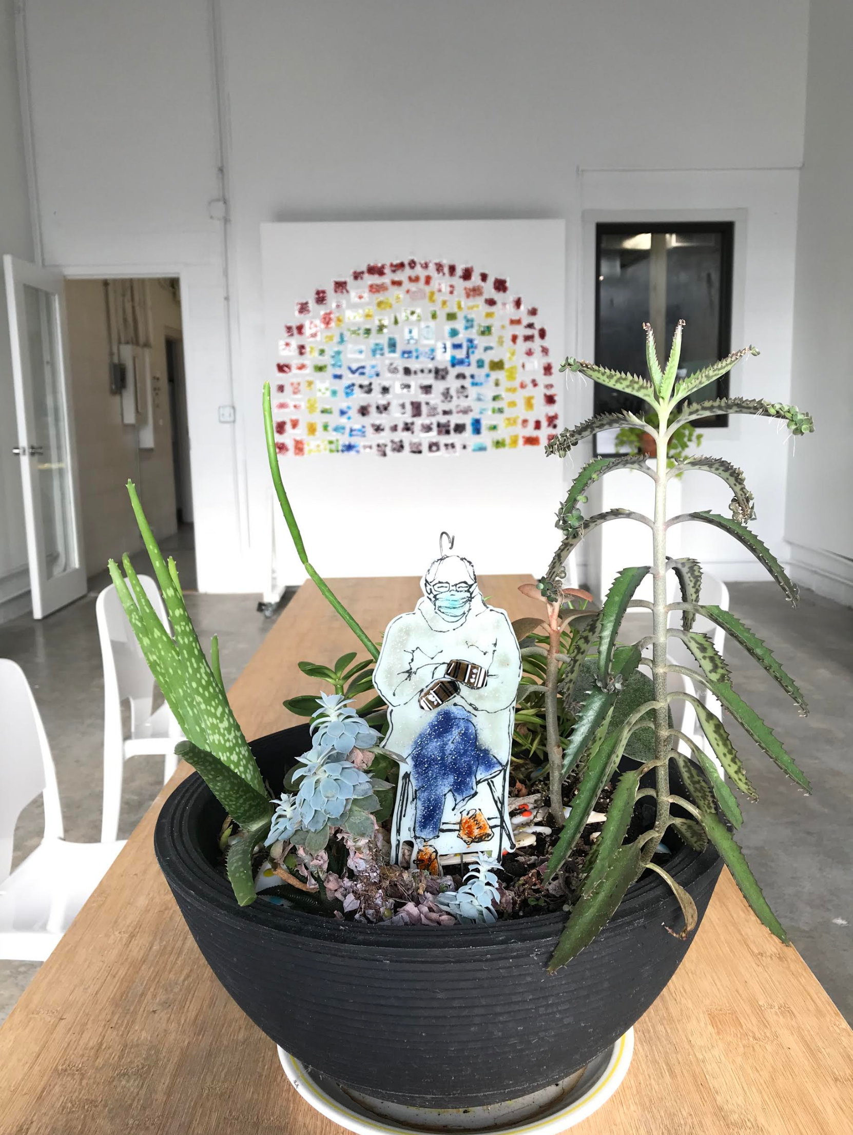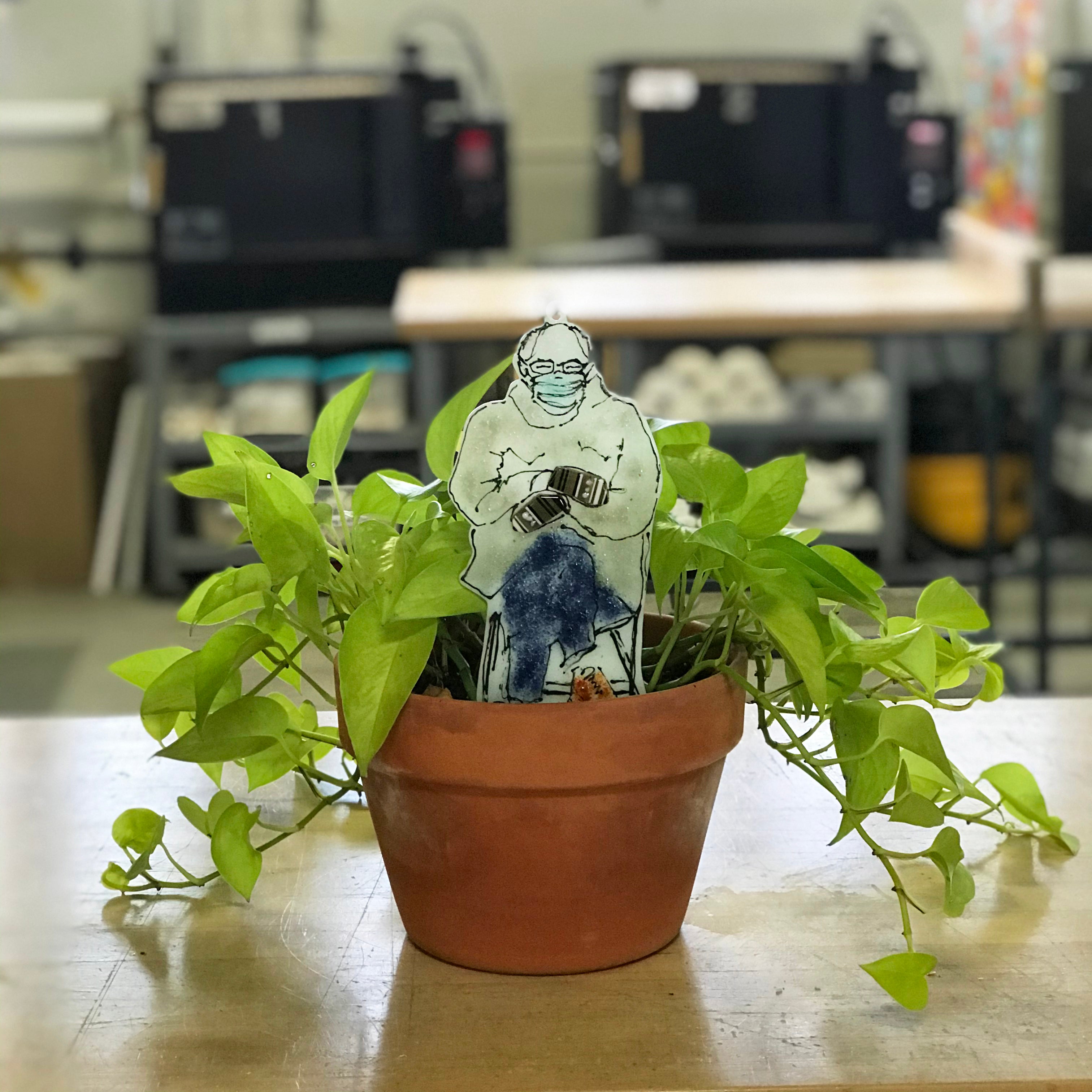 Feel the Bern! Enjoy your own handmade fused glass garden stake complete with Bernie's iconic mittens.